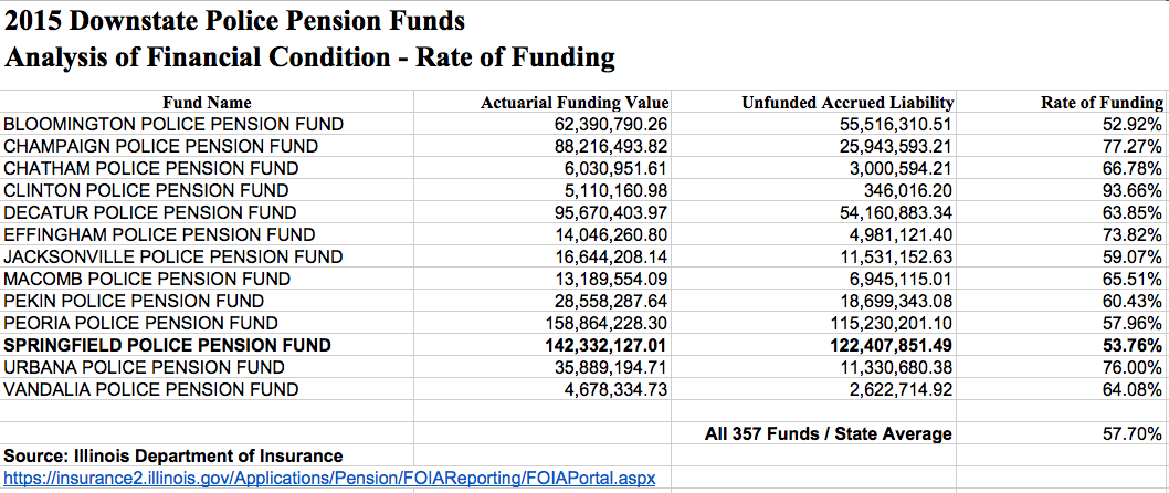 This week I reviewed the 2 most recent Springfield Police and Fire Pension Fund Actuarial Reports, dated 7 Dec 2011, which I can email to you if desired.