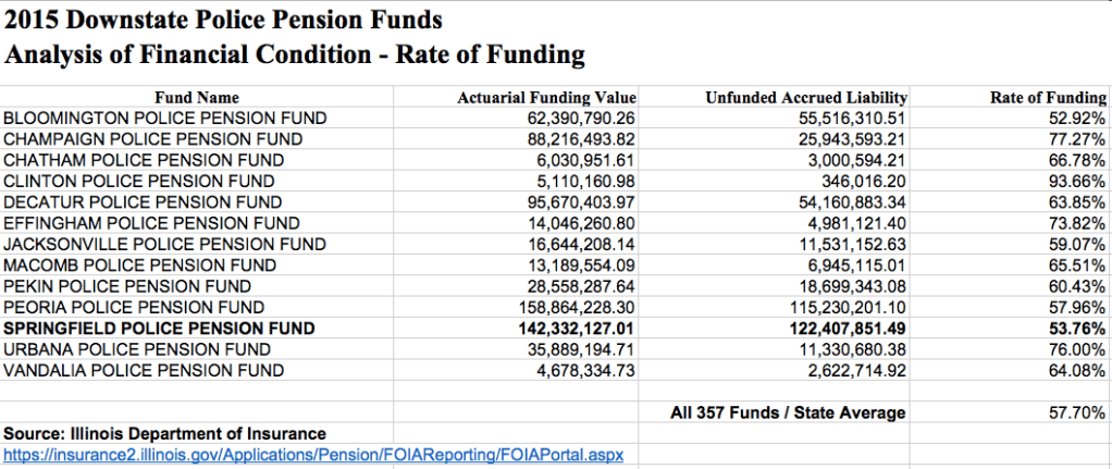 After years of wrangling, the Illinois General Assembly this month passed legislation aimed at fixing the state’s public pension systems, the worst funded in the nation, by reducing benefits for retirees. Blocks away from the Capitol at Springfield city hall, there is no sweeping plan in place to address the capital city’s own underfunded pension plans for retired police officers and firefighters, both of which have seen their unfunded liabilities balloon over the past 25 years during four mayoral administrations.